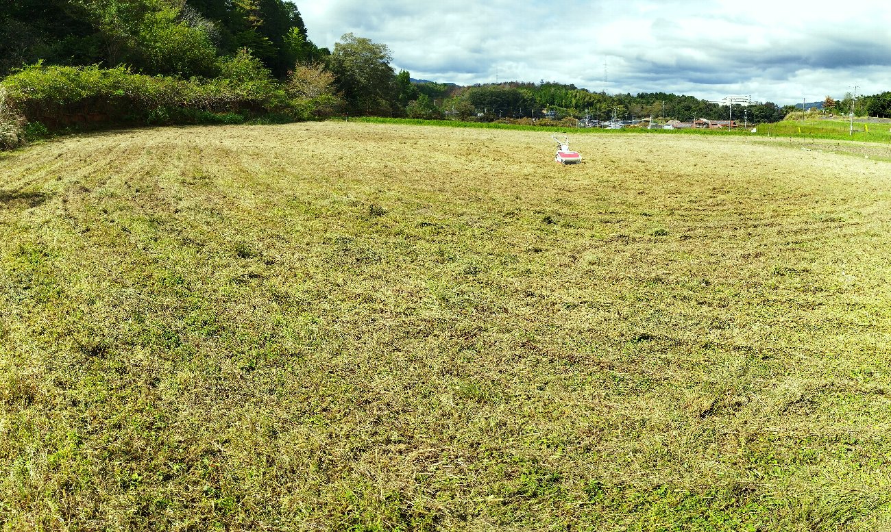 休耕田の管理除草ということでフレールモアで草刈、初めのうちは機械について歩くだけで楽な作業と思っていたが30分も歩くと足がだるい、ゆっくり刈ろうとエンジン回転を落とすと草を粉砕しなくなる、でエンジンはフル回転で使う、これじゃぁラジコンの草刈り機が売れるはず。
