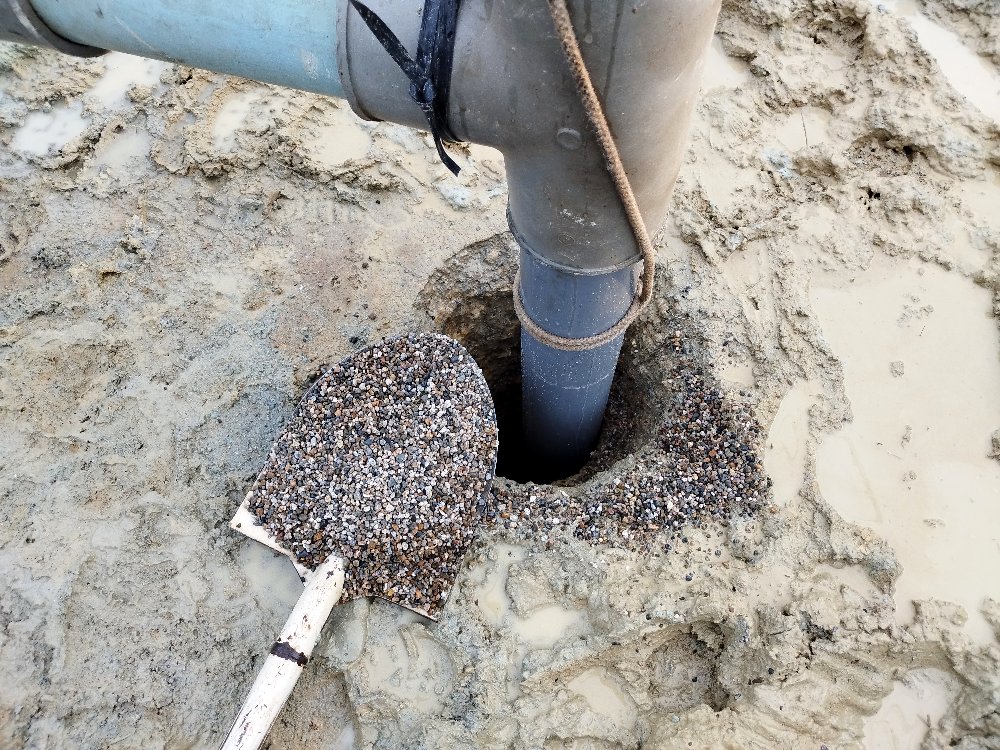 100m~132mまでボーリング孔とVPの間に目砂利を充填する