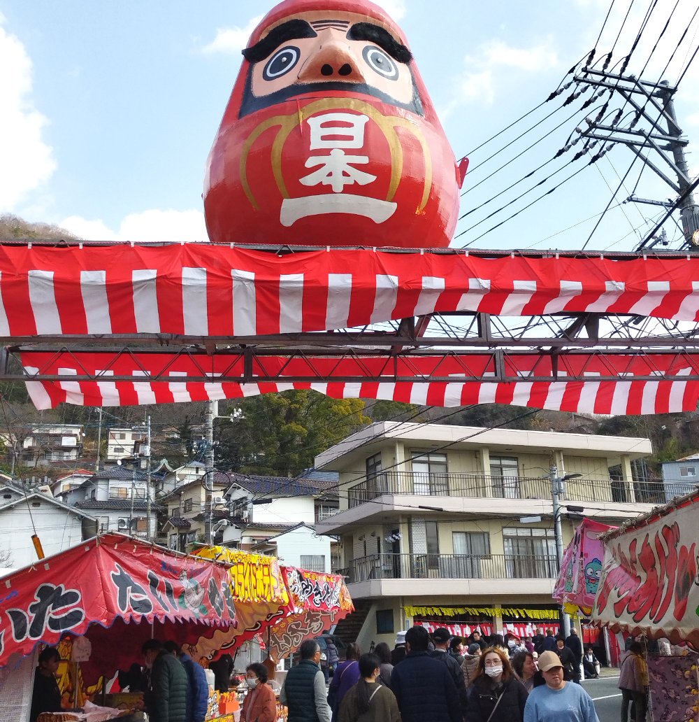 露店が立ち並ぶ終点付近には巨大ダルマがあった