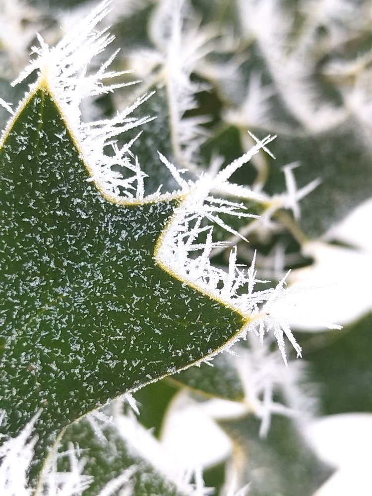 2/10 庭のクリスマスホーリーに付いた霧氷